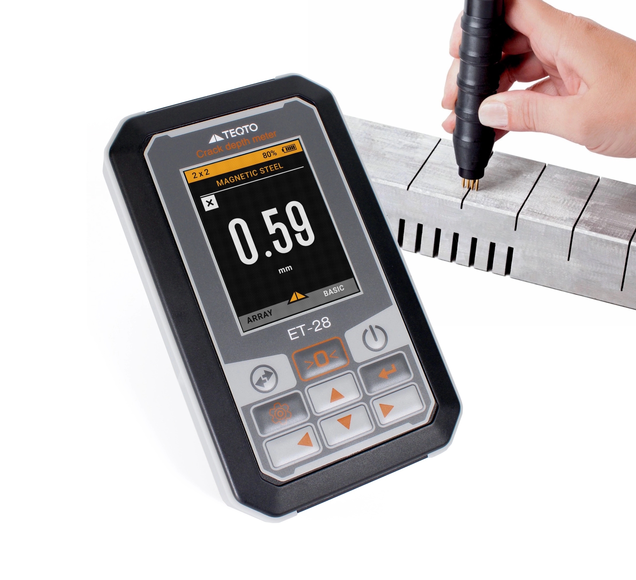 『ET-28』は、鉄・ステンレス・アルミ等の金属に発生したクラック(割れ)の深さを簡単に測定できる最新の亀裂深度計です。