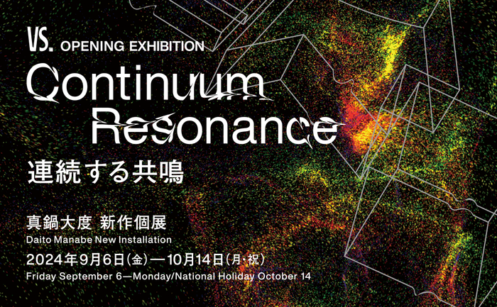 現在、VS.のオープニングエキシビションとして、日本を代表するアーティストである真鍋大度による新作個展「Continuum Resonance(コンティナム・レゾナンス):連続する共鳴」を、事前申込制・入場無料で開催中です。本展は、テクノロジーとクリエイティビティの融合により、見る人のインスピレーションをかきたて、新しい価値体系と世界観の提供を目指すVS.の象徴となる展覧会です。会場では、合計34台のプロジェクターと41台のスピーカーによる超高精細なサウンドシステムを使い、VS.全空間に広がる4つの新作インスタレーションを体験できます。