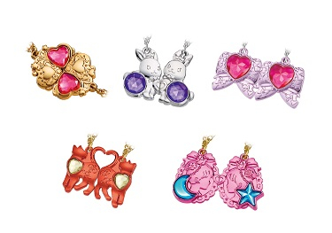 2.ペンダントトップは、様々な形状及びカラーのキラキラ可愛い魅力的なデザインで、2 個を繋げるとハートが出来上がる等の特別なペア仕様です。