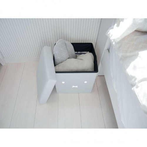 お片付けする時間がない人や、片付けは苦手という人にとってもオススメなのがこのスツール。フタを開けると収納BOXとして活用できちゃうんです。