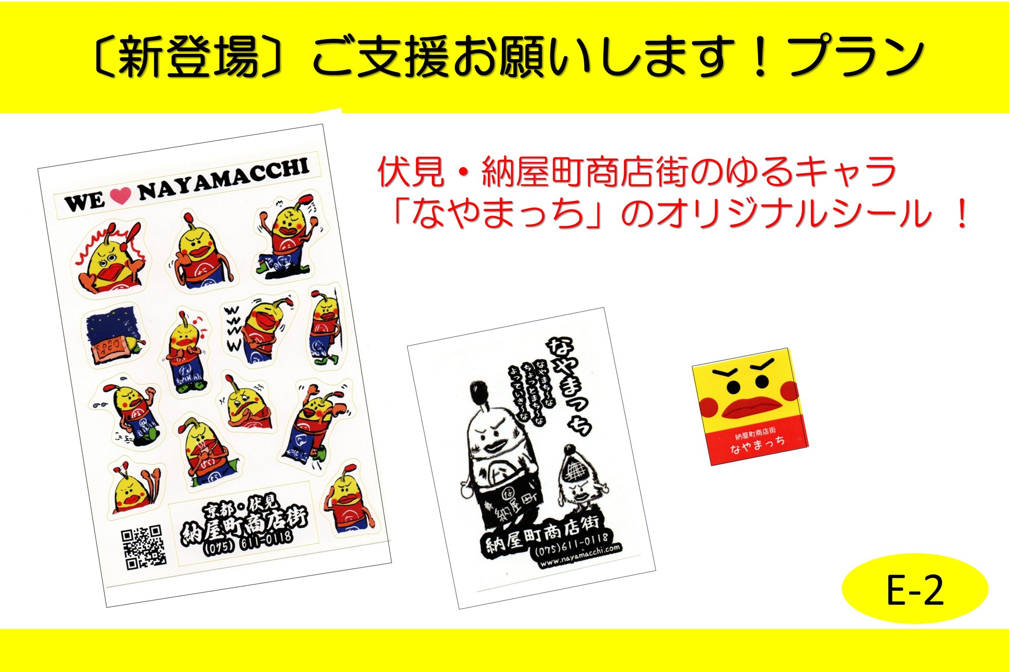・伏見・納屋町商店街のゆるきゃら「なやまっち」のオリジナルシールが届きます。