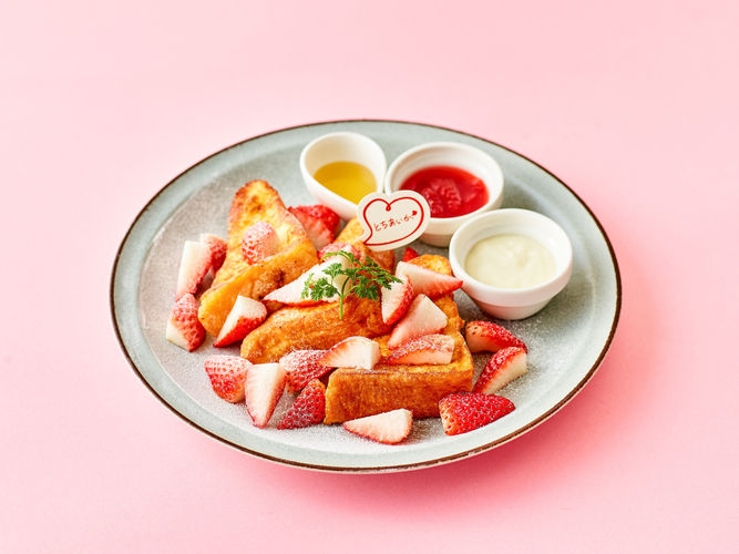 オリジナルスイーツは、栃木県産のいちごで酸味が少なく甘さが際立つ「とちあいか」を贅沢に使用したパフェやミルフィーユ、フレンチトーストとなっております。