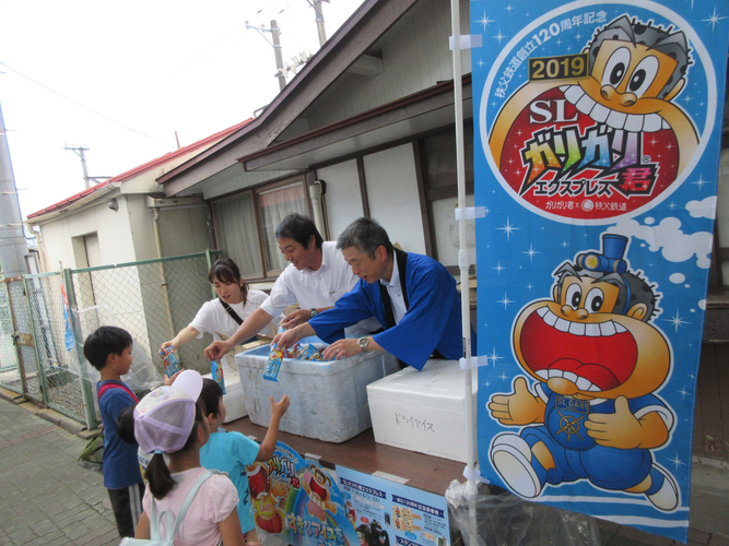 ○長瀞駅前にて「ガリガリ君アイスバー」プレゼント