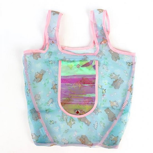エコバッグには珍しく、オーガンジー素材のエコバッグが登場です。パステルブルーのバッグにカワウソたちのキュートなデザインとともに、ピンクのパイピングが施されたゆめかわ系アイテム♡