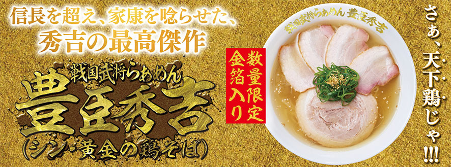 さぁ、天下鶏じゃ!!! 信長を超え、家康を唸らせた、秀吉の最高傑作 『戦国武将らあめん 豊臣秀吉(シン・黄金の鶏そば)』 6月7日(水)より期間限定発売!!
