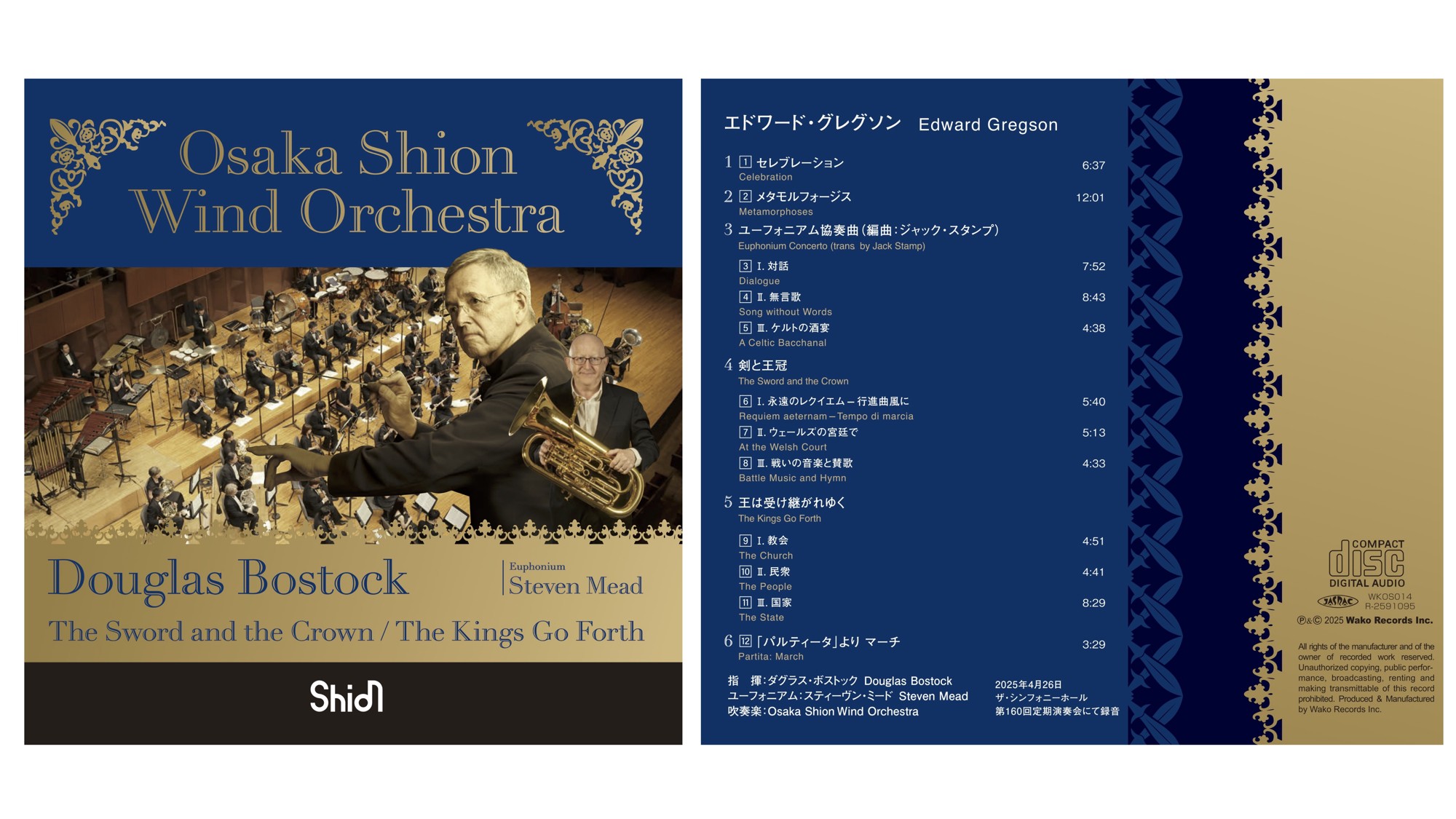 ダグラス・ボストック首席客演指揮者就任を記念し、世界を代表するユーフォニアム奏者であるスティーヴン・ミードをゲストに臨むのは、80歳を迎える鬼才、エドワード・グレグソン特集。イギリス出身である三者とShionが織り成す風格と独創性を湛えた多彩な音楽は、聴き手を魅了してやみません。エキサイティングな職人芸、大胆ともいえる実験的な響き、鮮やかで美しい描写性…グレグソンの唯一無二の世界を抜群の演奏で楽しめる、注目の一枚。