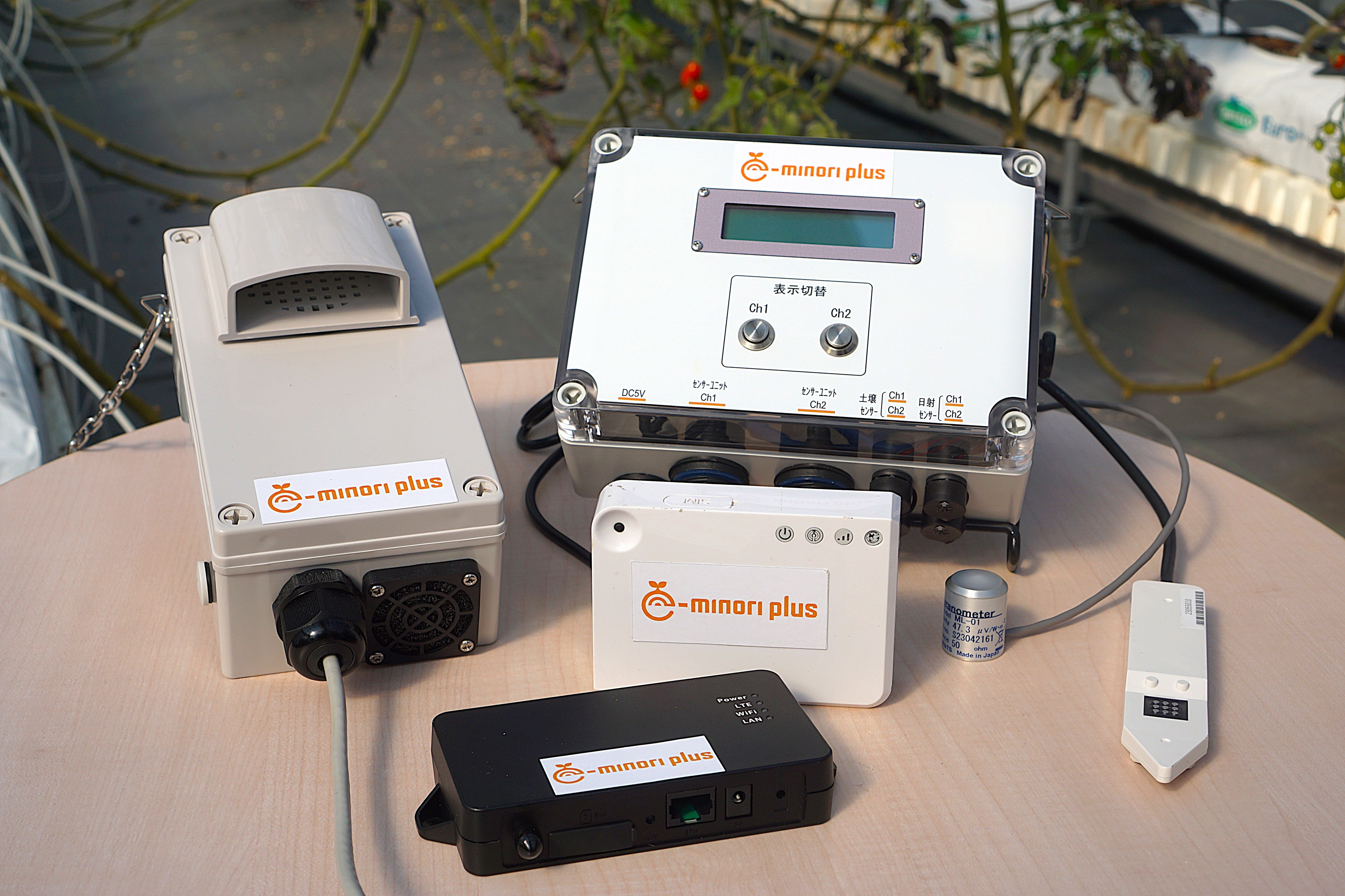 e-minoriは、ビニールハウス内外環境や土壌状態をセンサーで測定し、そのデータをもとに自動で環境を制御することで、作物の生育環境を最適化するシステムです。