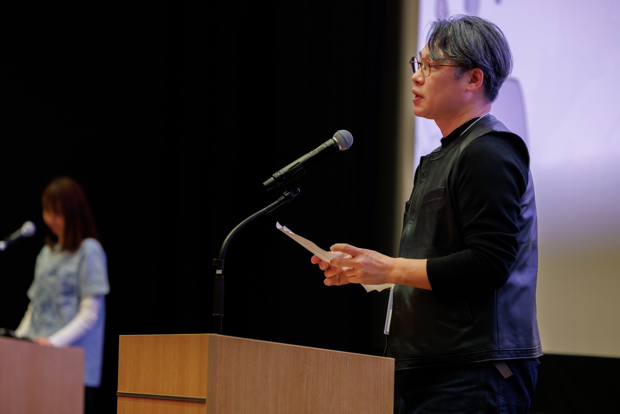 また、国際審査員を代表して、今年3月に第97回アカデミー賞長編アニメーション賞を受賞したギンツ・ジルバロディス氏が登壇。ギンツ氏は2015年に短編部門入選作家として初めて本映画祭に参加し、今回が3度目の来場となりました。本映画祭に関わることの喜びと共に、「映画祭を通してたくさんの友人が出来た。今年も新しい友人が出来ることを楽しみにしている」と挨拶しました。