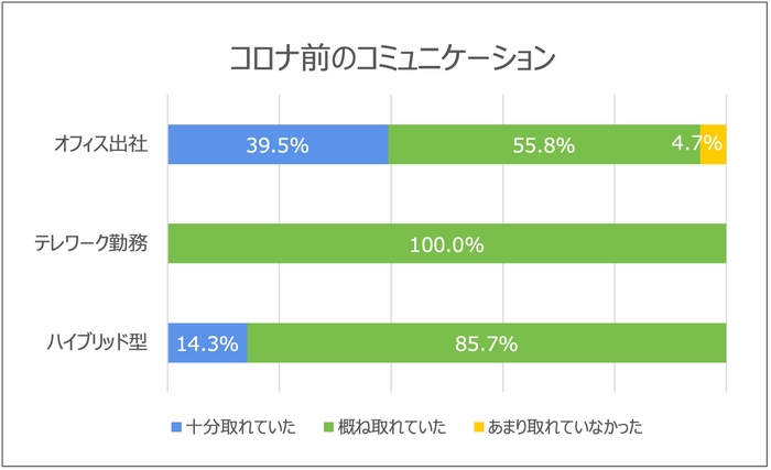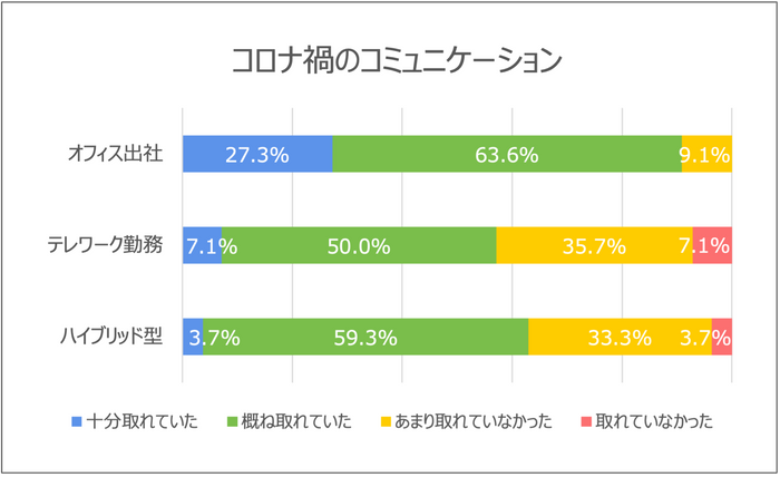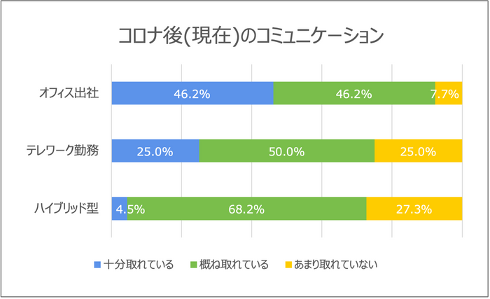 ■コロナ禍:テレワーク、ハイブリッド型の約4割がコミュニケーション不足を感じた