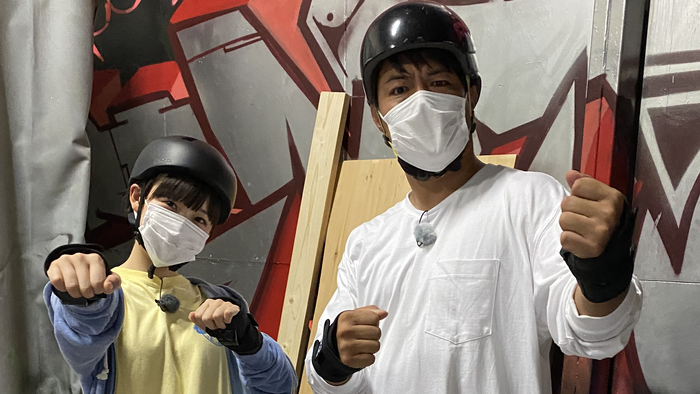 ここあ(甲斐心愛)とゲストの天竺鼠・瀬下さんが挑戦するミッションは、「転ばずスケボーに乗り続ける」こと。
