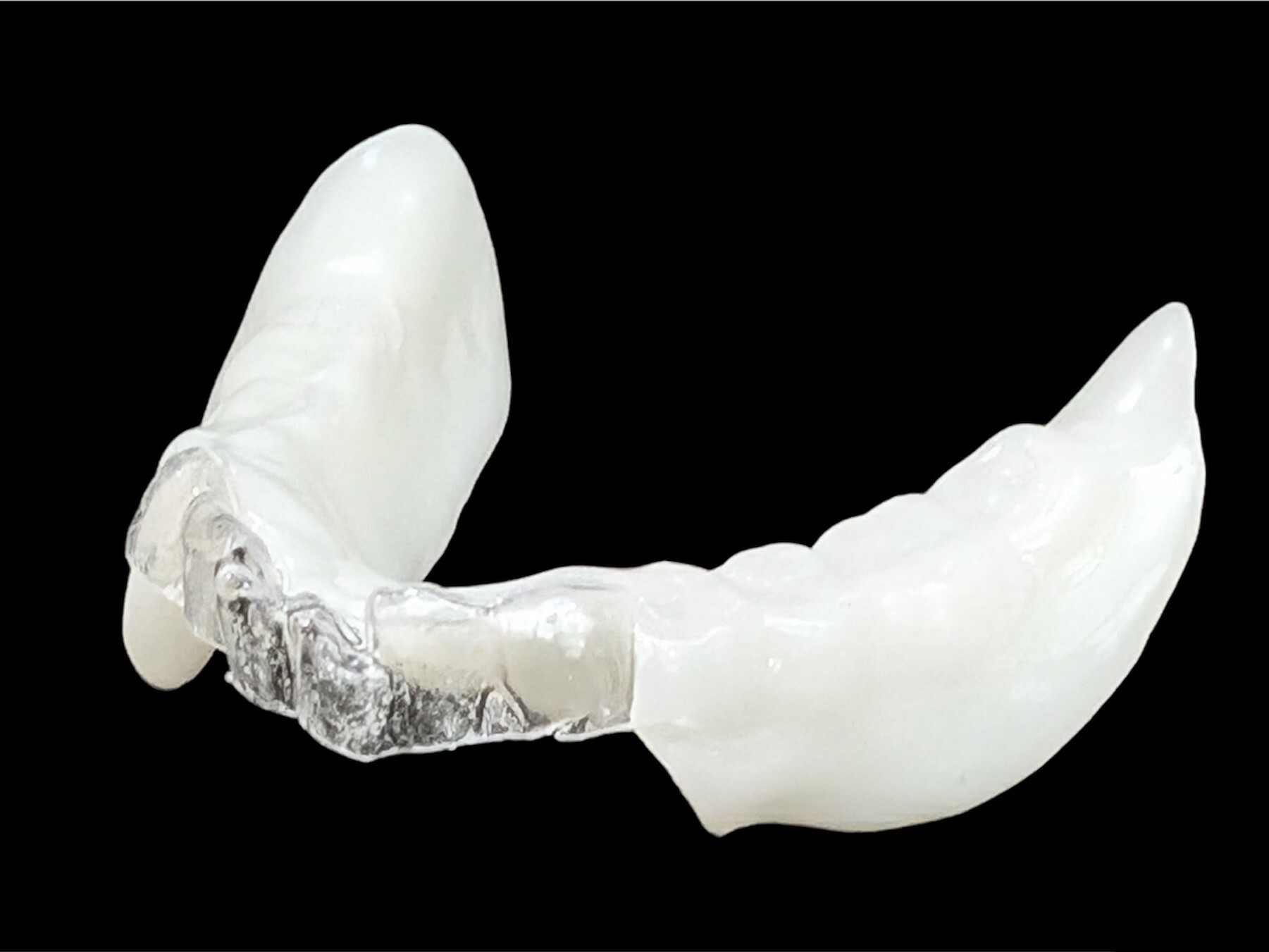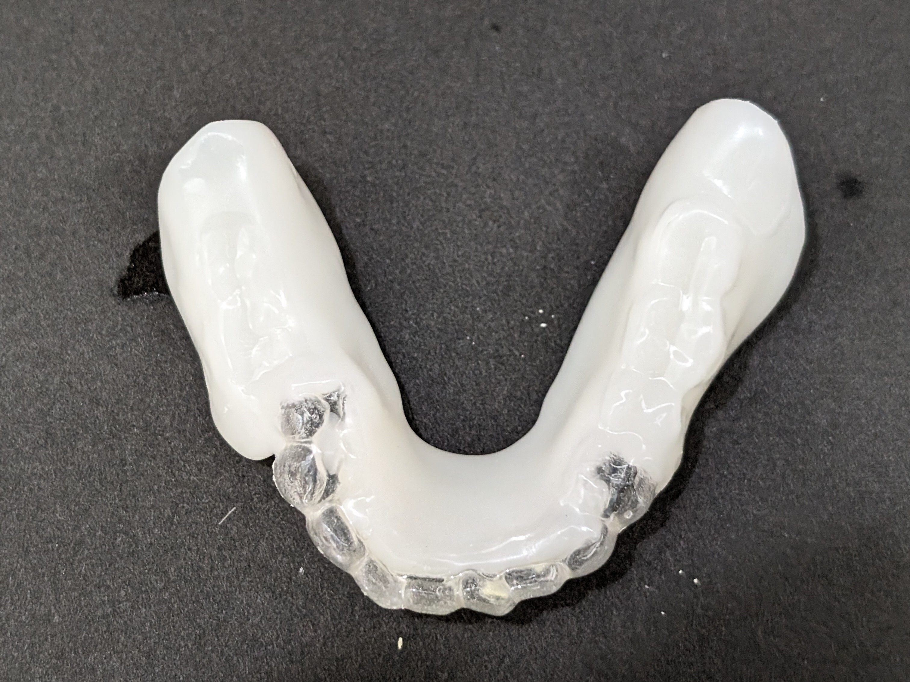 2022年8月より提供を開始したおやすみ入れ歯。当初は3Dプリンターのみで作れる一体型の総入れ歯のみでした。しかし部分入れ歯は義歯利用者の約8割と多く、お断りせざるを得ない人も出てきました。そのため部分入れ歯にも対応できるよう、従来の材料の固さやマウスピースとの接合方法などを模索して試作を行い、提供が可能となりました。