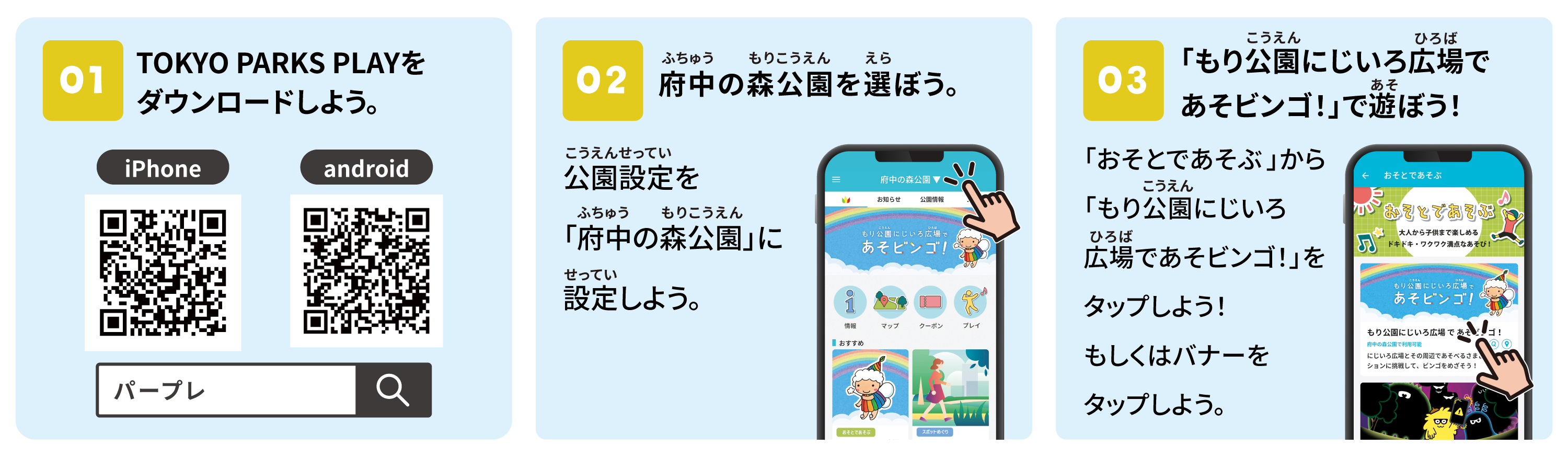 ※アプリストアで「東京都公園協会」、「TOKYO PARKS PLAY」、「パープレ」のいずれかで検索。