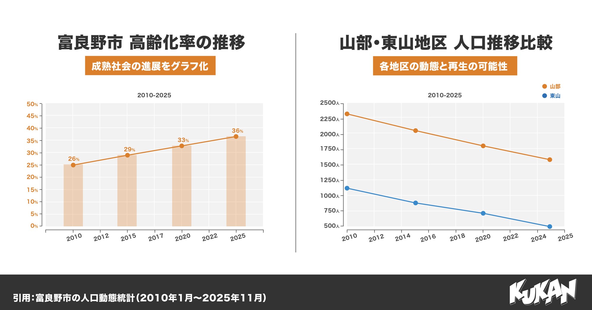 北海道を拠点に不動産DX・地方創生事業を展開するクウカン株式会社(本社:富良野市、代表取締役:山本 健太郎、以下「当社」)は、富良野市の人口動態統計(2010年1月〜2025年11月)に基づいた地域動態分析を公表いたします 。