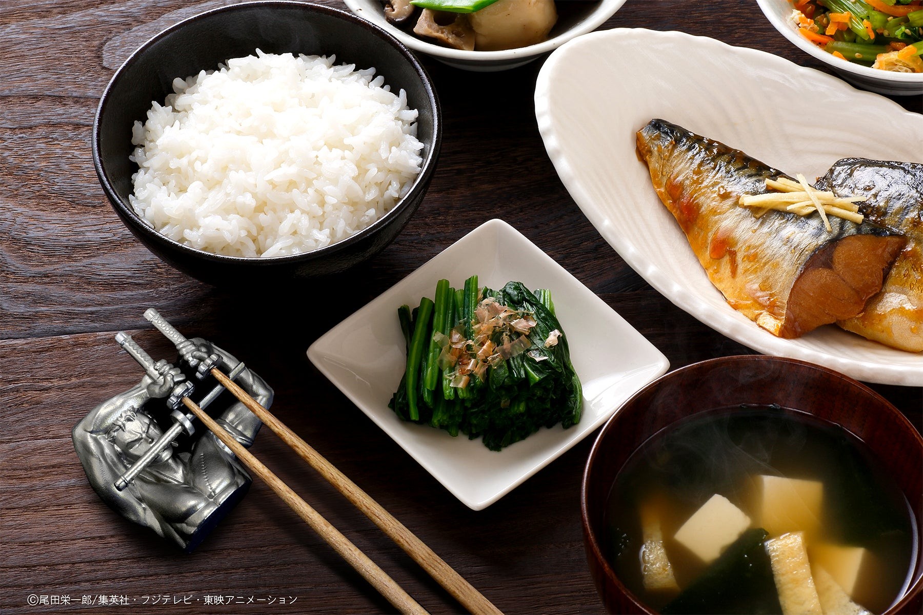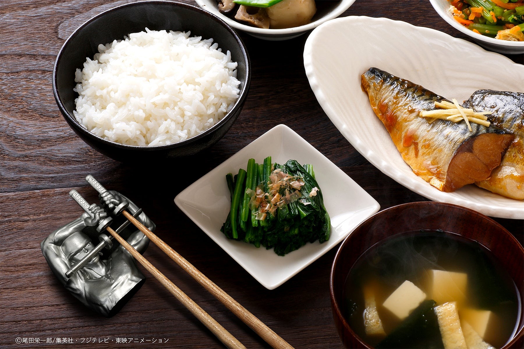 あなた自身が箸を置くことで三刀流と技を完成させることができる再現グッズです。