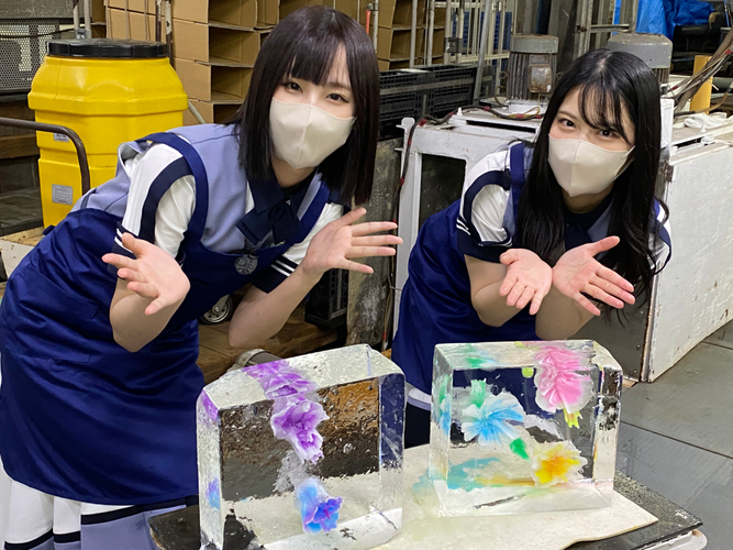 『氷は冷やすだけじゃない!』ということで、ほのたん(矢野帆夏)と沖ちゃん(沖侑果)は、氷を使った彫刻づくりに挑戦!