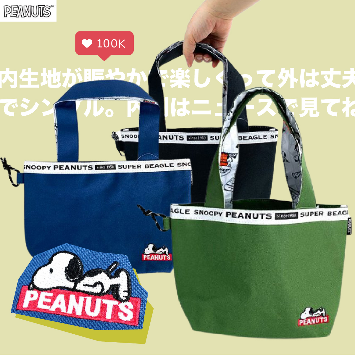 シンプルだけど内側デザインはキュート♪スヌーピーのさりげない可愛さが魅力のねそべりミニトートバッグ