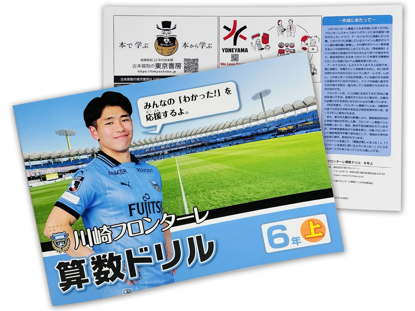川崎市宮前区を拠点に「本を捨てないで!」を愛言葉として、古本、古書の買取をトータルサポートする有限会社東京書房(神奈川県川崎市宮前区、代表取締役:和田 達弘、以下 古本買取の東京書房)は、クラブパートナーとしてサポートする株式会社川崎フロンターレ(本社:神奈川県川崎市、代表取締役社長:吉田 明宏、以下 川崎フロンターレ)が配布する2025年度算数ドリルパートナーになりました。