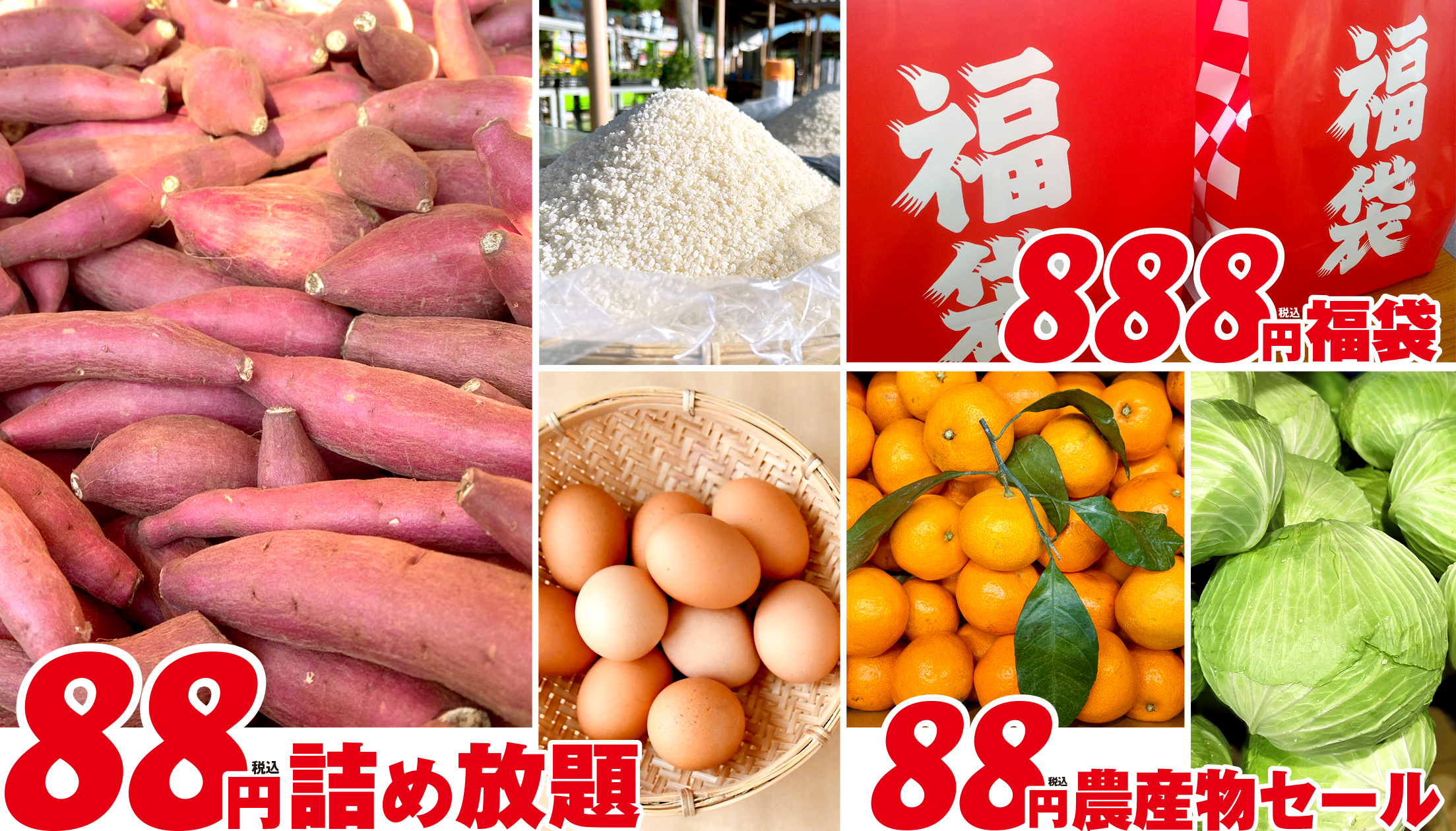 ~88円詰め放題や88円均一農産物セール、888円福袋など楽しいお得な5日間~