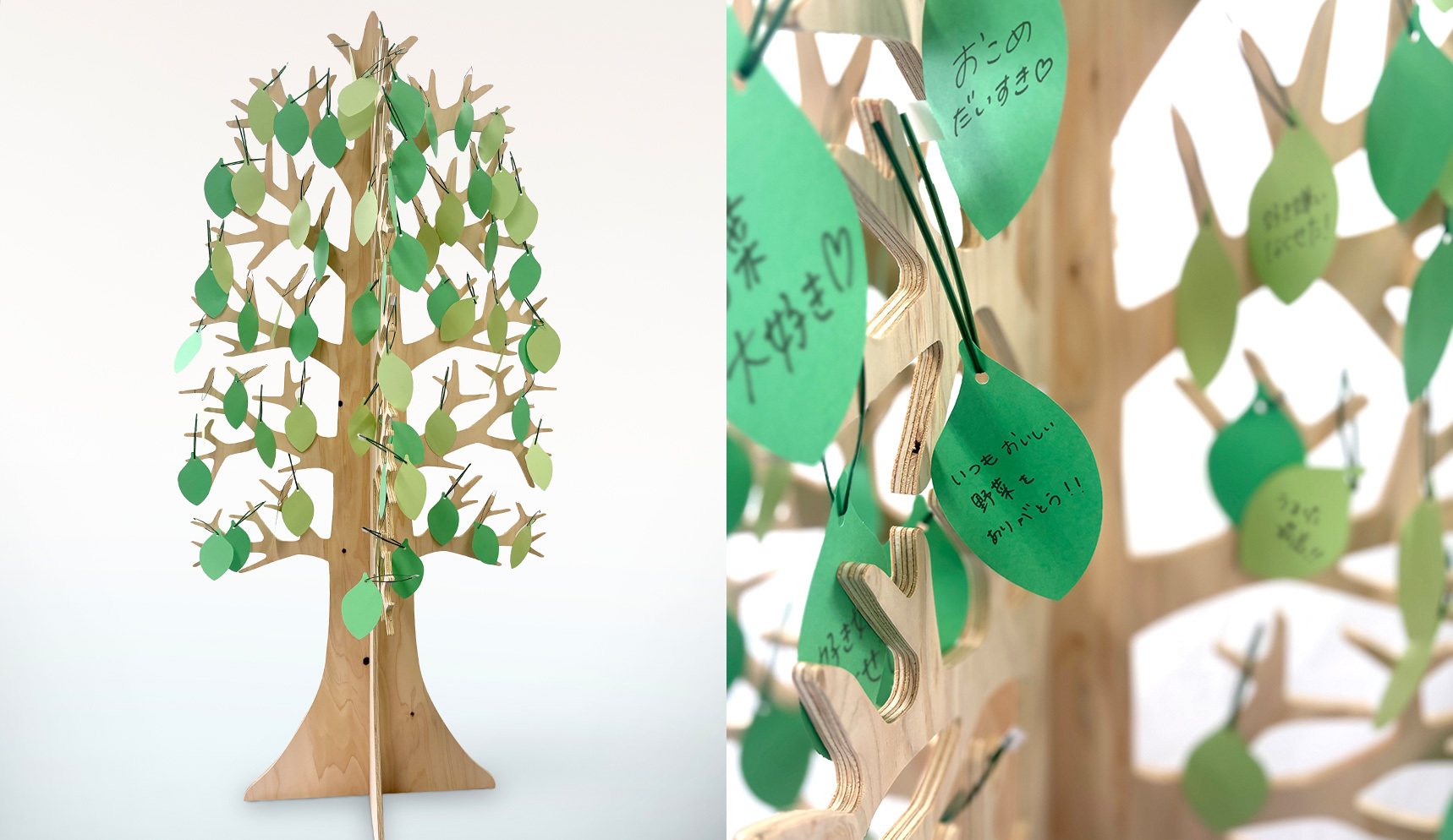 当駅は350名もの契約生産者さんに支えられ、8周年を迎えることができました。日々、自然と向き合いながら私たちの食を支えてくれる、そんな生産者の方々へメッセージリーフ(紙)に感謝の言葉を書き込み、世界に1つだけのツリーを完成させましょう!手書きのメッセージリーフをツリーに吊るした後は、記念撮影も楽しんでください!