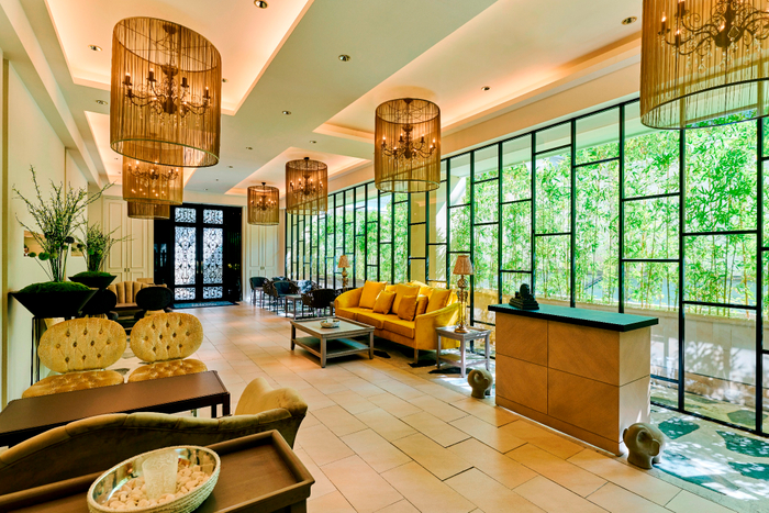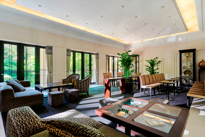 中央にあるミモザカラーのシンボルソファをはじめ、ヨーロッパより直輸入した個性的なソファを配置した洗練された空間はフォトスポットとしてもおすすめです。