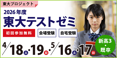 東大テストゼミとは、東大型オリジナル予想問題による模擬試験+解説授業+答案添削で皆さんの学習をサポートするプログラムです。