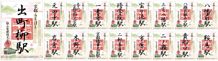 ※1.元田中駅、茶山・京都芸術大学駅、一乗寺駅、修学院、宝ケ池駅、三宅八幡駅、八瀬比叡山口駅の7駅セットになります。