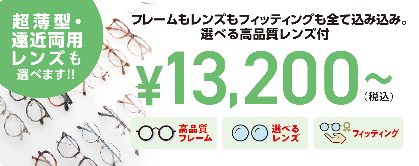 ■メガネ1組 税込¥13,200~!超薄型・遠近両用レンズも選べます!