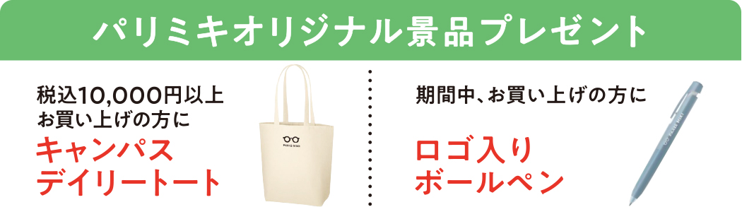 オープンを記念し、税込10,000円以上お買い上げの方に、オリジナルトートバッグを、また、期間中お買い上げの方にオリジナルボールペンをプレゼントいたします!