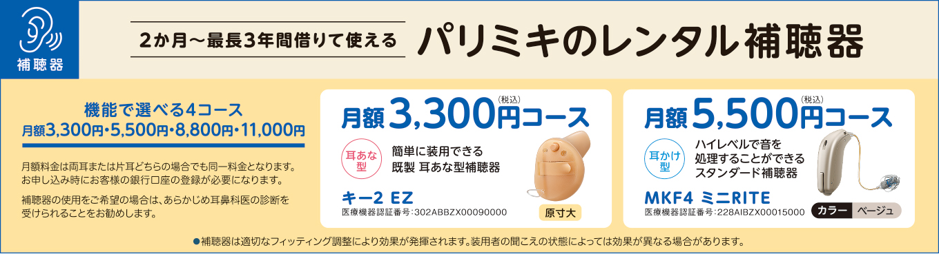 ■パリミキのレンタル補聴器