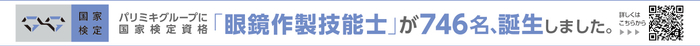 2022年4月より、国の定める「技能検定」の職種に「眼鏡作製職種」が新設され、国家検定資格「眼鏡作製技能士」がスタートし、パリミキグループでは現在746名の合格者が在籍しています。(※自社調べ) 多様化・高度化するお客様のニーズにあわせて、「適切な診断・治療」と「適切な眼鏡作製」の双方の実現に向け、眼鏡技術者が眼科専門医と連携しつつ、皆様により良い眼鏡を提供し、目の健康を守れるよう、眼鏡作製の技能を高めてまいります。