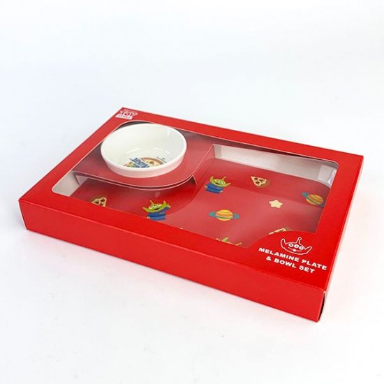 トイストーリーのメラミンプレート&ボウルセット!ここはピザプラネット?パーク気分が味わえるメラミンプレートとボウルでお子様とパーティーを楽しもう♪メラミン素材だから落としても安心。