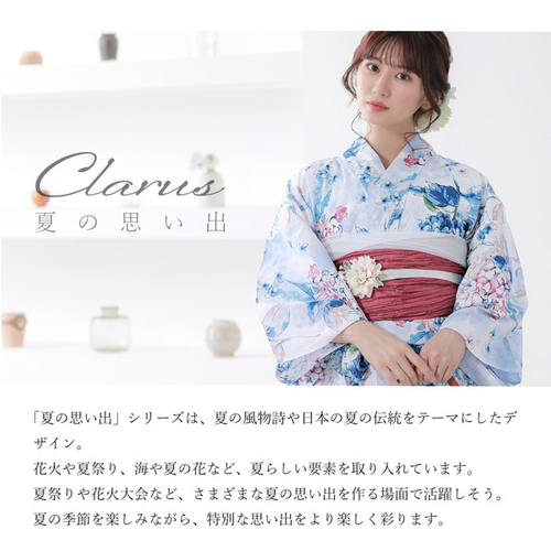 京都発の和装通販ショップ「京都きもの町」(有限会社京都きもの町、京都府京都市、代表取締役:久保村一文)から、新ブランド「Clarus」(クラルス)が誕生しました。同社はメディア衣装提携実績が豊富なショップ。「夏の思い出」「植物図鑑」をテーマにしたコレクションを浴衣+帯+下駄の3点セットで販売。帯の種類は半幅帯としわ兵児帯があります。オンラインストアより購入可能。2024年4月25日正午(12時)から予約販売開始です。