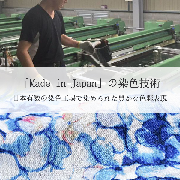 浴衣生地が染められたのは、1966年から続く日本有数の染色工場。創業以来、「Made in Japan」の物作りへの前向きな姿勢と強いこだわりをもって、商品開発・加工技術の向上に努めてこられた工場です。