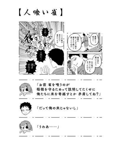 現世と隠世がまじりあう世界に、古めかしい日本家屋が一軒。そこに暮らすは、人間の男と女狐の新婚夫婦。ふたりの仲睦まじい時を邪魔するのは、人喰い雀だけじゃなくて…?人と妖の暮らしは、昼はキケンで夜は甘い!?