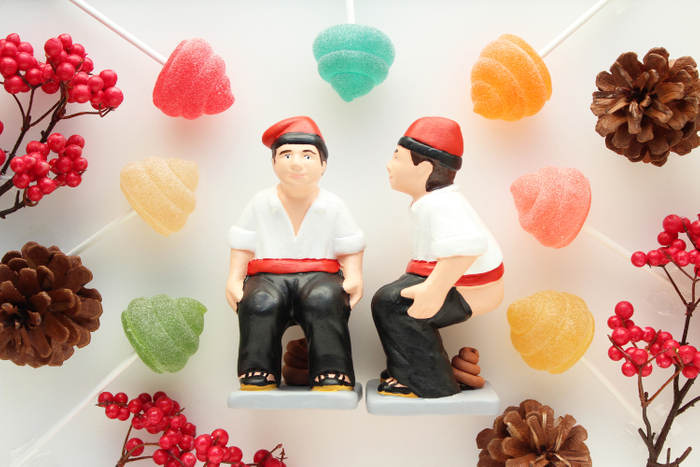 パパブブレ発祥の地、バルセロナのあるカタルーニャ地方でクリスマスのお祝いに飾られるカガネー人形。カガネーの起源は古く、17世紀から18世紀のバロック時代、排泄物は土壌を豊かにして、翌年の五穀豊穣につながると信じられていたことから飾る様になったとのこと。パパブブレだけのカガネースイーツをお楽しみあれ。