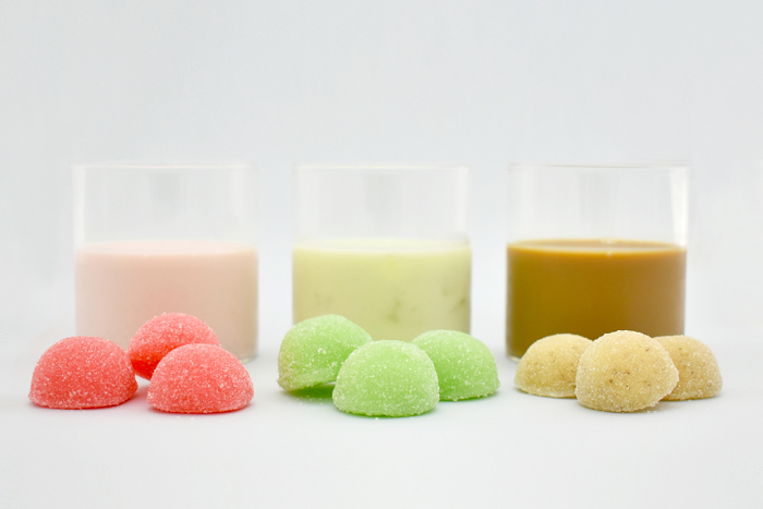 アールグレイ茶葉の入ったミルクティー、甘酸っぱいいちごミルク、贅沢気分のメロンミルクの3種類。冬らしいほっこりカラーに癒されながら召し上がれ。