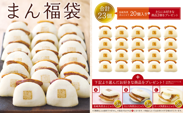 長崎角煮まんじゅう20個+ABCからお好きな商品1種類を3個プレゼント