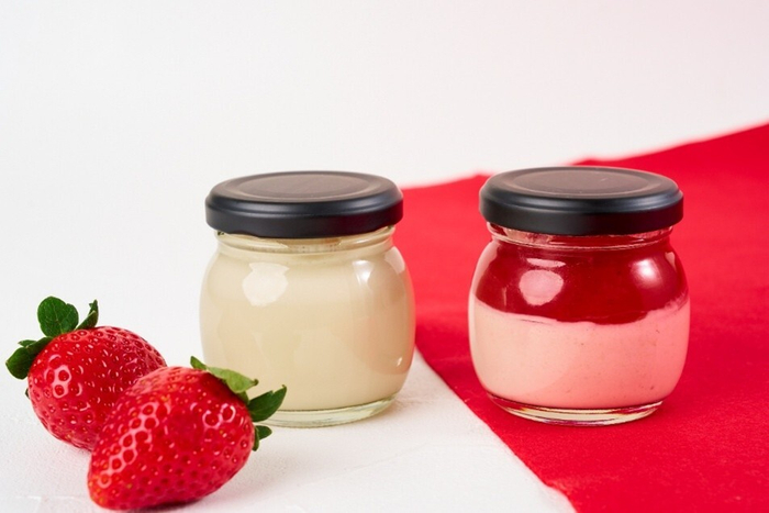 「紅」は茨城県産の苺を使用した2層のプリン。