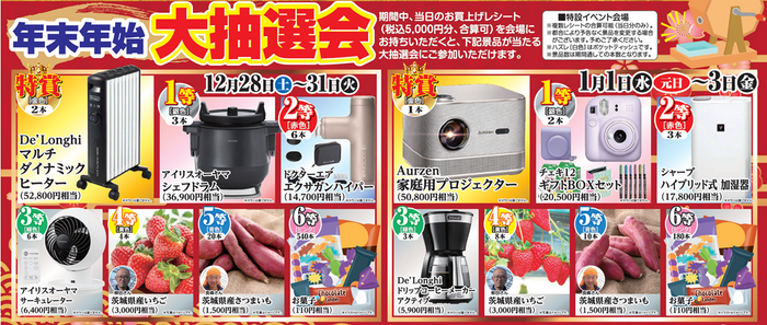 大抽選会では、ほかにも便利家電や地元生産者の自慢の農作物が当たる大チャンスも!ぜひ奮ってご参加ください。