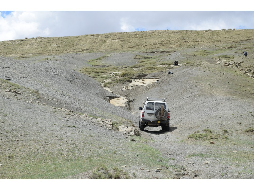 2024年にモンゴル科学アカデミー古生物学研究所と岡山理科大学共同調査隊がこの産地の再発見と詳しい専門的調査を目標に、現地の人々の協力を得て、調べたところ、幸いなことにその場所を特定し、大型の獣脚類と大型の竜脚類の足跡を発見しました。さらに2025年に詳しい調査と地質調査を行いました。