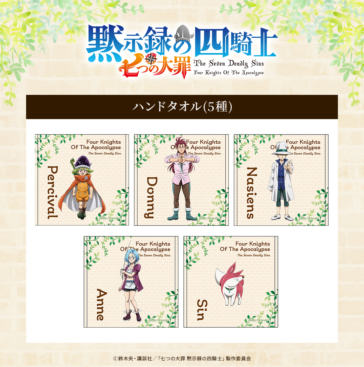 TVアニメ『七つの大罪 黙示録の四騎士』よりハンドタオルが登場!