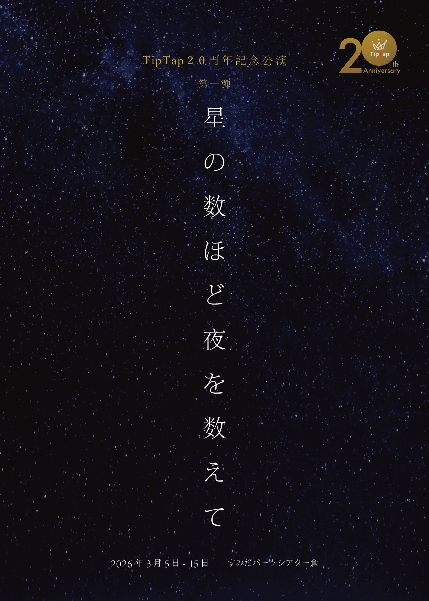 Cue Company主催、TipTap20周年記念公演 第一弾『星の数ほど夜を数えて』が2026年3月5日 (木) 〜 2026年3月15日 (日)にすみだパークシアター倉(東京都墨田区横川1-1-10)にて上演されます。