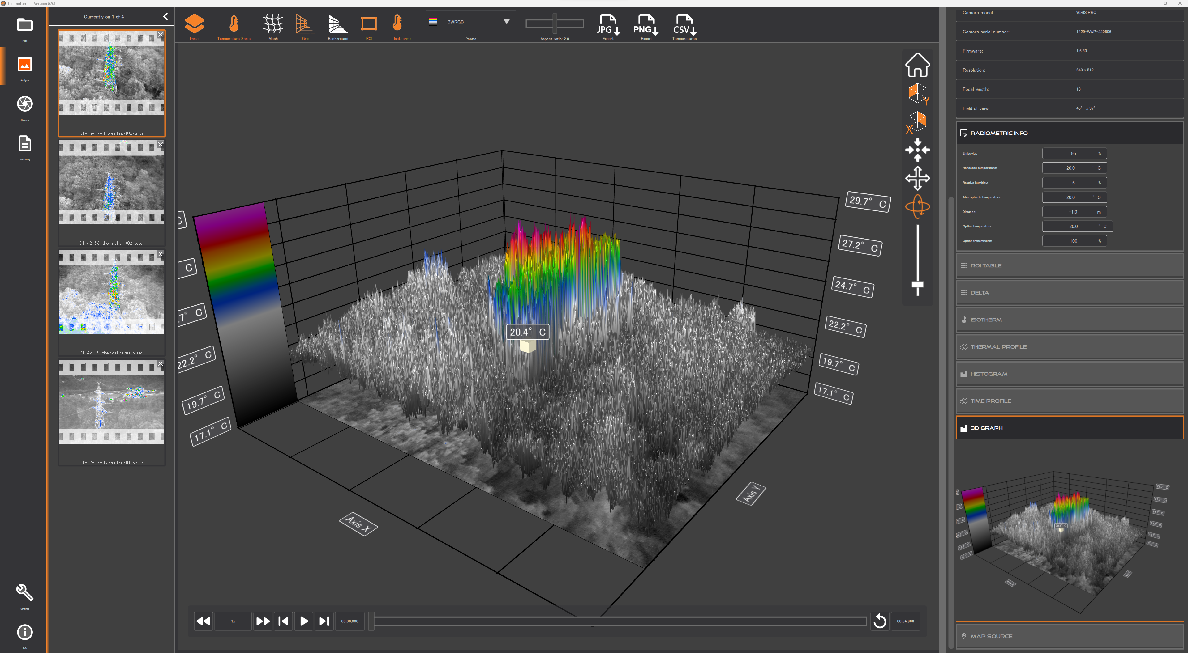 ・放射分析 TIFF画像、放射測定フルフレーム IR 記録(30Hz RAW)