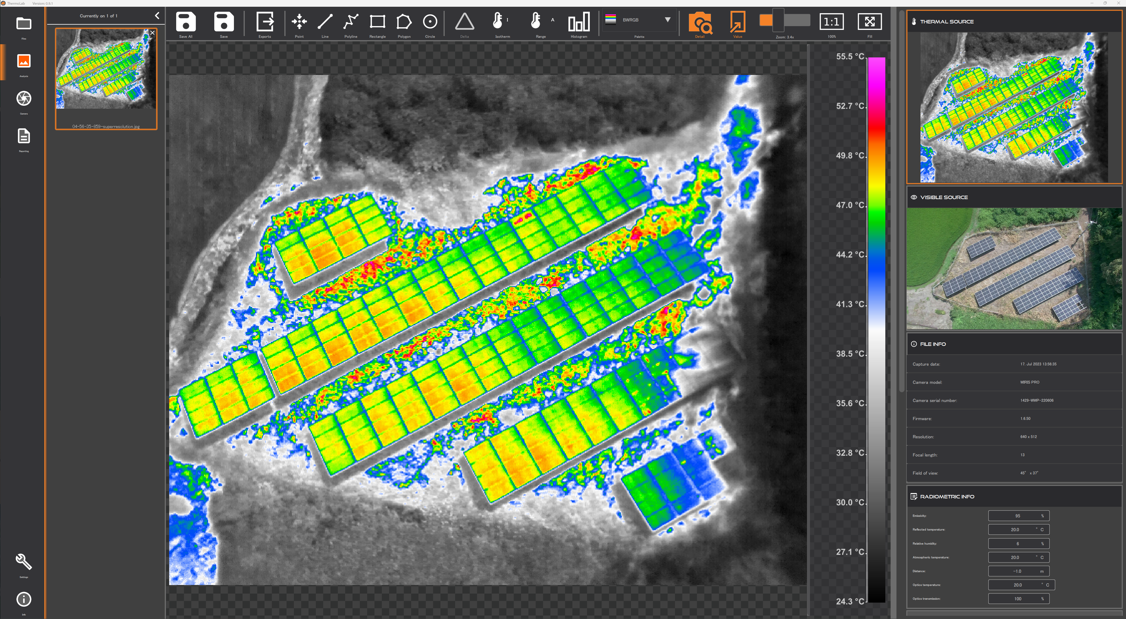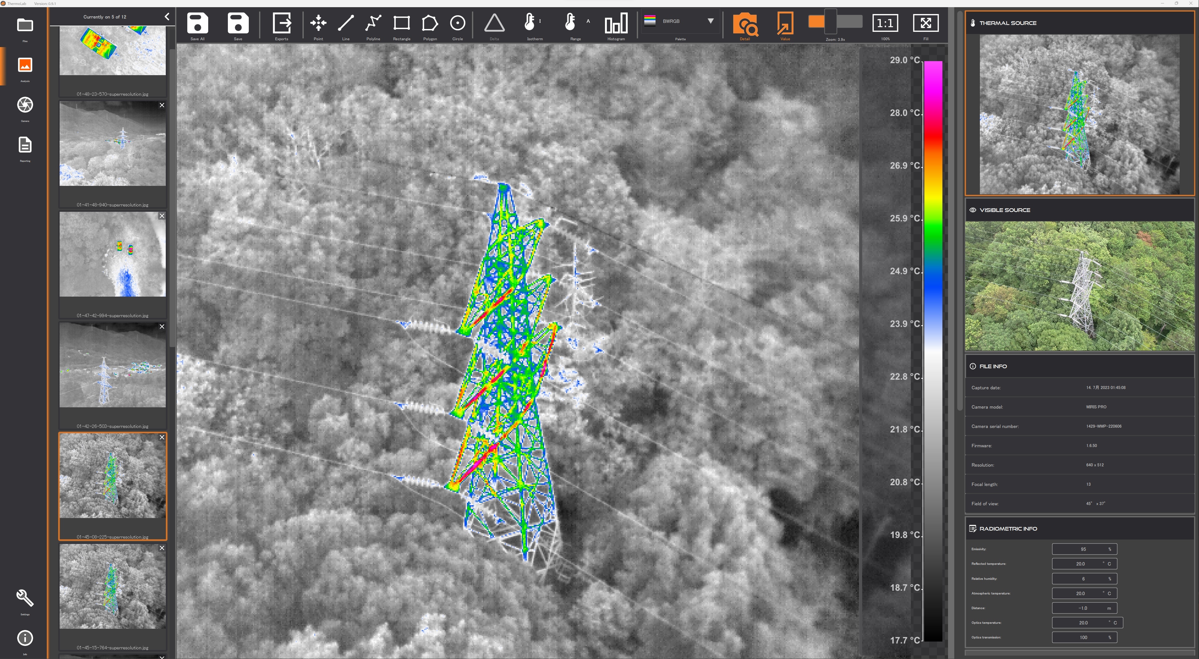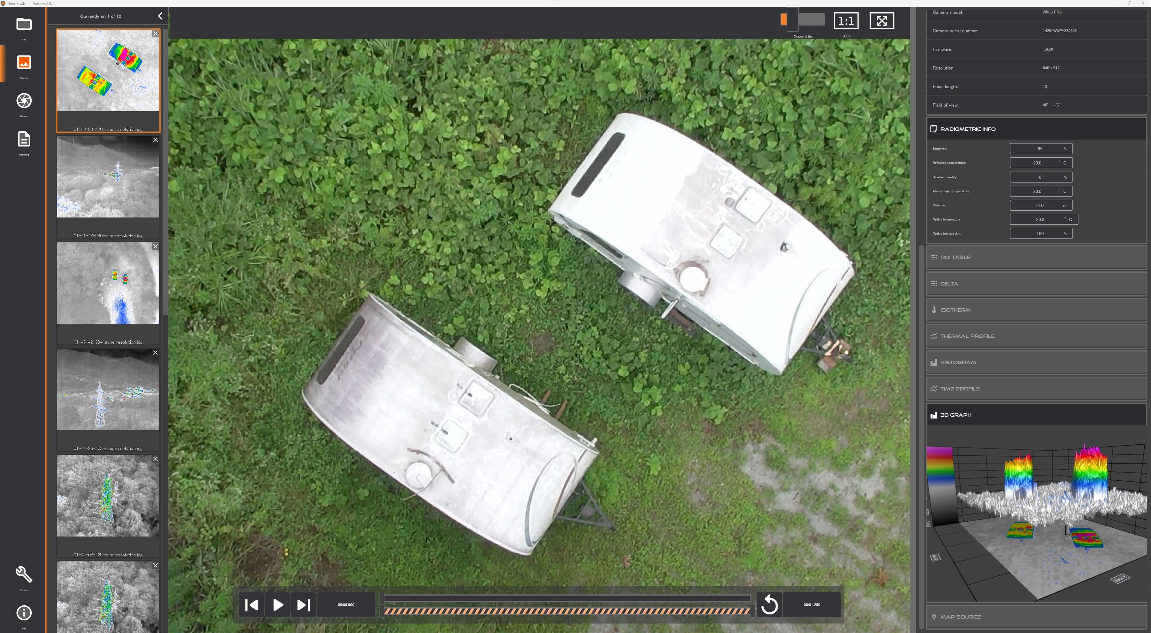 Workswell社の「WIRIS Pro」は、無人航空機(UAV/UGV)やドローンで使用するために設計さた高性能マルチセンサーカメラです。熱検査、セキュリティ、消防、地質学、考古学、林業研究、生態学、環境研究など様々な分野で活用できる精細なサーマル画像を撮ることができます。