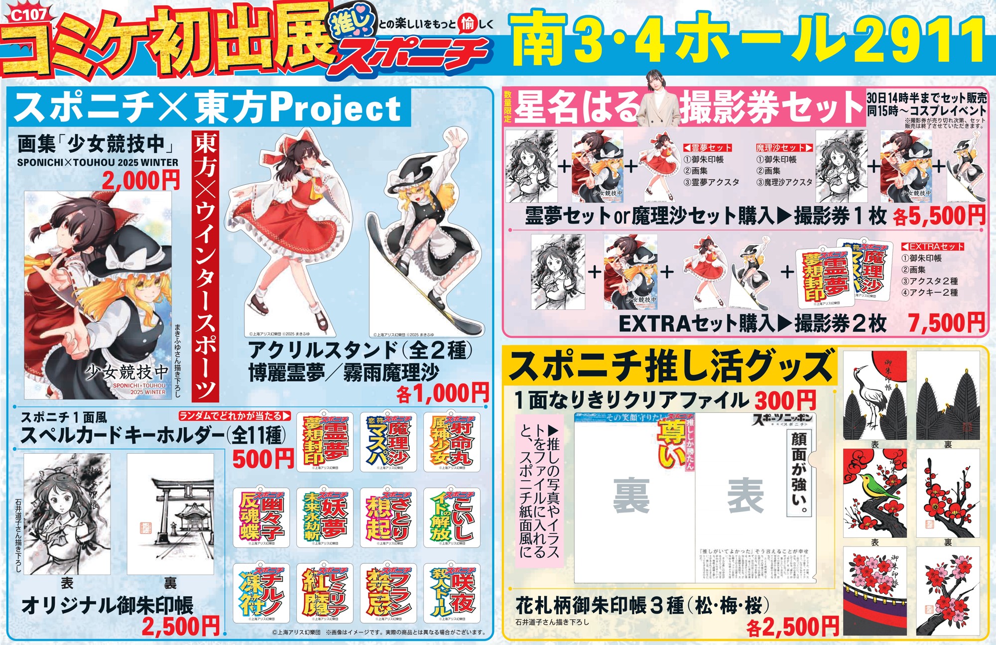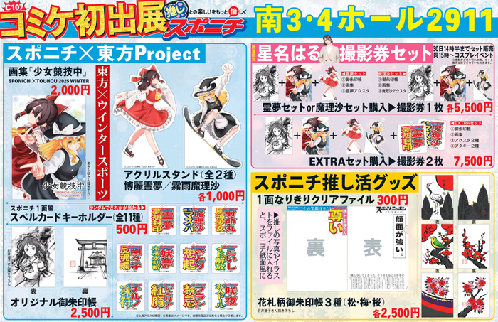 スポーツニッポン新聞社が12月30、31日に東京ビッグサイトで開催されるコミックマーケット107に初出展!ゲームシリーズ『東方Project』との異色タッグが実現し、「東方×ウインタースポーツ」グッズを制作します。ファンなら絶対に見逃せないアイテムです!