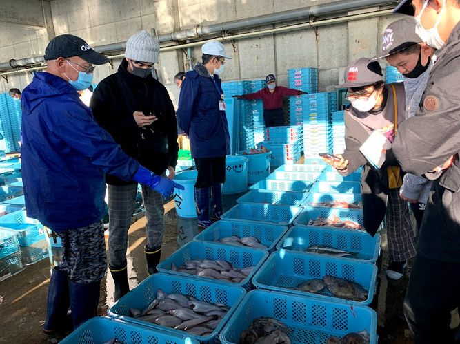 タイやヒラメ、アンコウ・・・、昨年11月に和食を学ぶ東京山手調理師専門学校(東京都深沢 校長=村川秀夫)の学生たちいわき市平沼ノ内の沼之内魚市場に訪れた。この日に水揚げされた新鮮な魚に、仲買人が次々と値を付けていた活気ある取引を目の当たりにした。