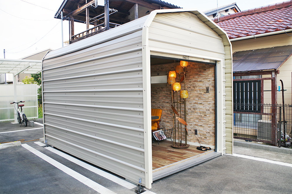 タイニーハウスとはシンプルで小屋のようなサイズの家のことを指し、母屋の付帯スペースとして趣味を楽しむホビールームや大切なバイクを保管・リペアする室内ガレージとして使用できる新しい住まいのコンテンツです。