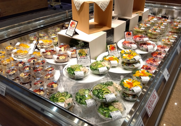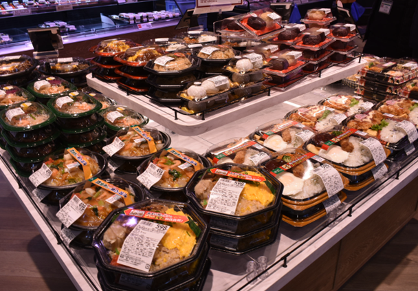 店舗周辺には単身および2人世帯のお客様が多いことから、食べきりサイズや調理が簡単で便利な商品を種類豊富に取りそろえます。小型スーパーマーケットが集積するエリアに立地する中、食料品をはじめ日用品まで、コストパフォーマンスに優れたプライベートブランド商品から高品質な商品まで幅広く取りそろえ、地域のお客様の毎日の暮らしを支える店舗づくりを進めてまいります。