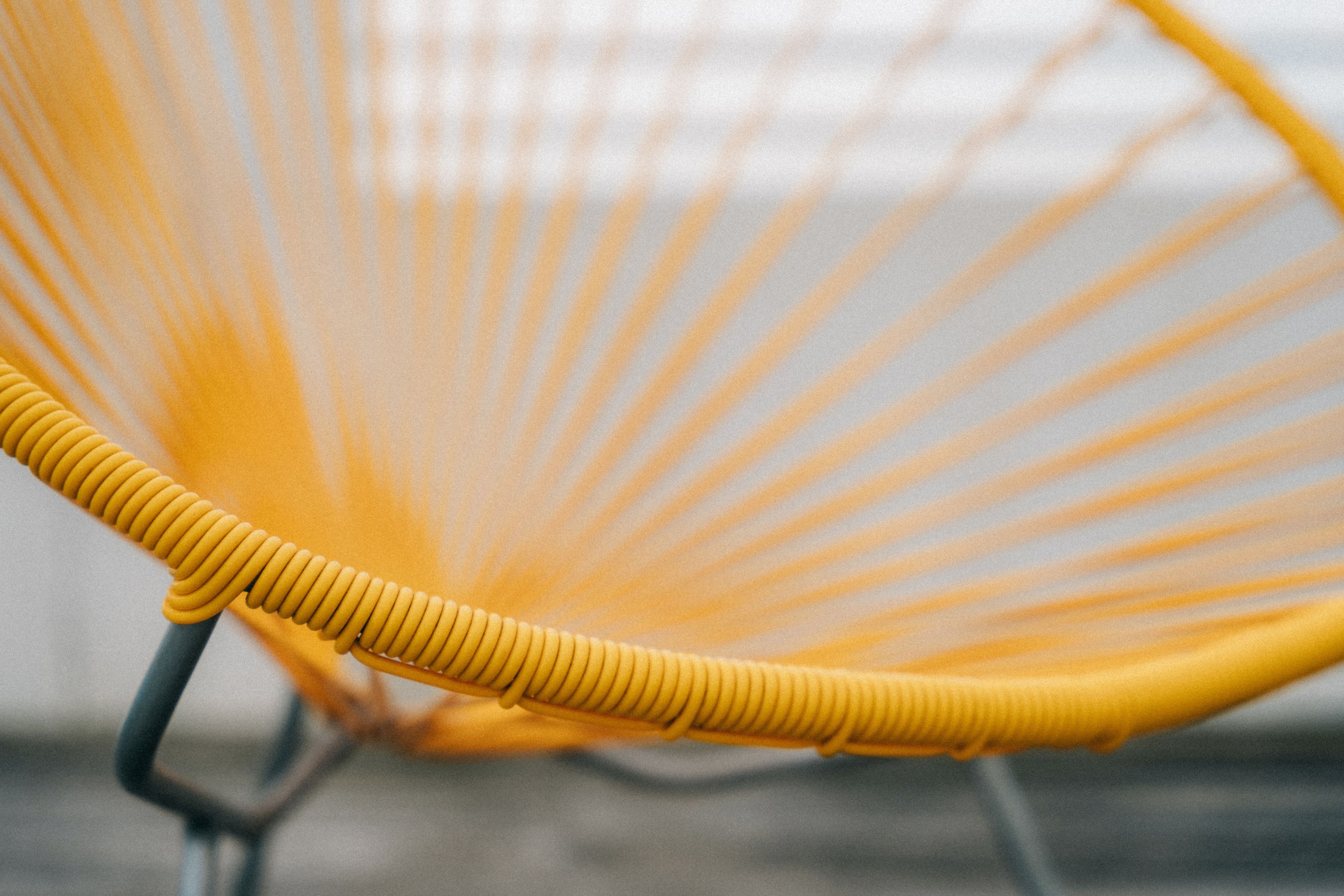 ◇COMOSOYのアカプルコチェアのPVCコードは環境に配慮したリサイクル素材を使用しており、経年劣化してもフレームはそのままに新しいコードに巻き直すことで永くお使いいただけます。