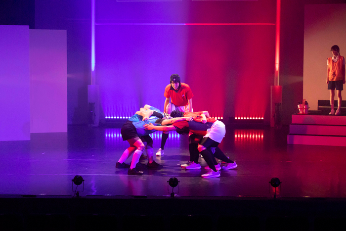 花形みつるのラグビー小説「Go Forward!櫻木学院高校ラグビー部の熱闘」が原作の舞台「Go Forward!」が6月16日(金)に東京・かめありリリオホールで開幕した。ラグビー部の創設と“花園出場”を命じられた新任教師・酒田公男が監督となり、部員を集め、素人ばかりの理由(わけ)あり部員たちを鍛えて前進していくドラマティックな青春ストーリー。ミュージカル「テニスの王子様」などに出演してきた兼崎健太郎をはじめ、栗山絵美、小笠原健、村松洸希、登野城佑真、荒一陽、設楽銀河、坂垣怜次、末永みゆ、さらにベテランのモロ師岡など、個性的なキャストが集結した。